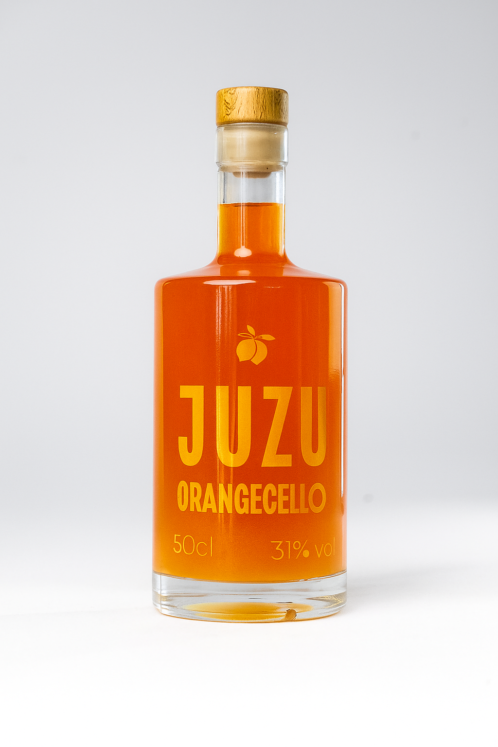 JUZU Orangecello is de zonnigste van het stel. Een fluweelzachte likeur met de geur van versgeraspte sinaasappelschil. De kleur is warm en natuurlijk, niet te fel, precies zoals de smaak: puur en gebalanceerd.